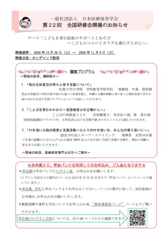 2025年度第22回全国研修会ご案内のお知らせ
