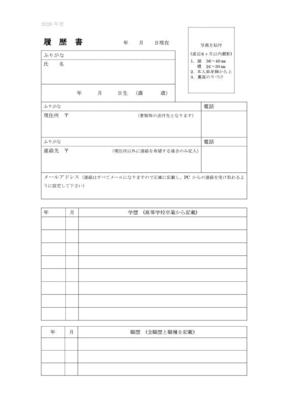 履歴書 2026(PDF)